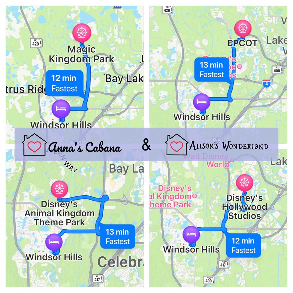 Both of our Kissimmee villas are short walks to the Windsor Hills clubhouse amenities, which include - free with your stay - a resort pool, waterslides, splash pad, and fitness center. There is also a community game room, marketplace and grille, DVD Rentals, movie theater and ATM.
